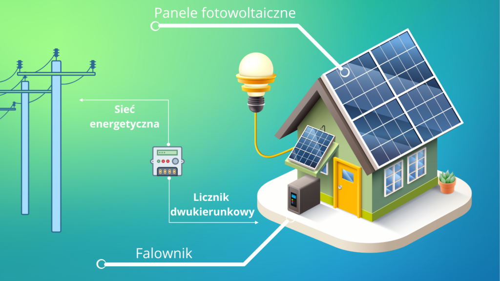 Kiedy dom wykorzystuje mniej energii, niż produkuje system fotowoltaiczny, nadwyżka energii elektrycznej jest przekazywana z powrotem do sieci energetycznej. W tym miejscu pojawia się licznik dwukierunkowy, który mierzy zarówno ilość energii pobieranej z sieci, jak i ilość energii dostarczanej do niej. Dzięki temu użytkownik może otrzymywać kredyty za nadprodukcję, i wykorzystywać energię z sieci, kiedy jest jej potrzeba, na przykład w nocy lub w pochmurne dni.